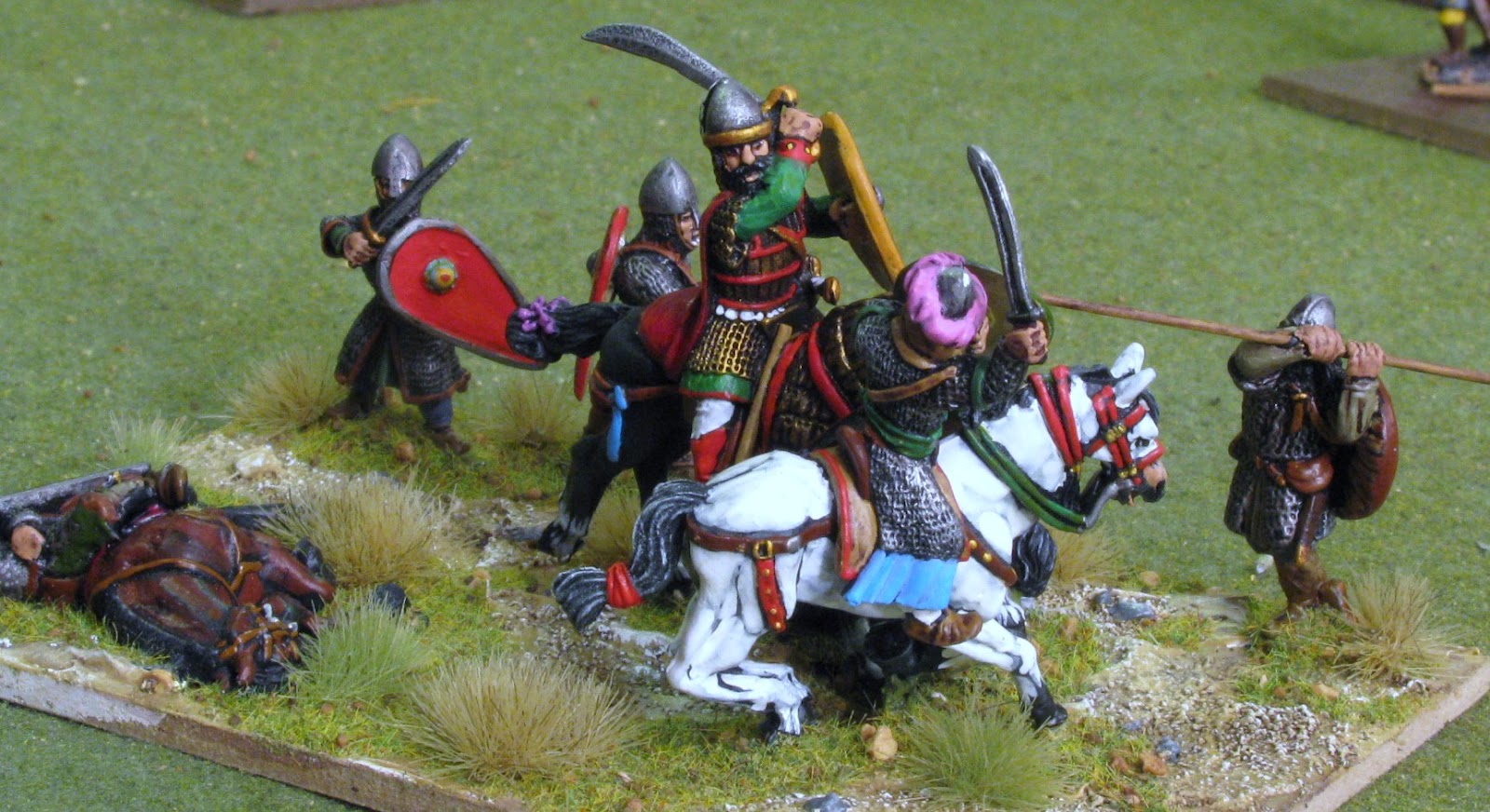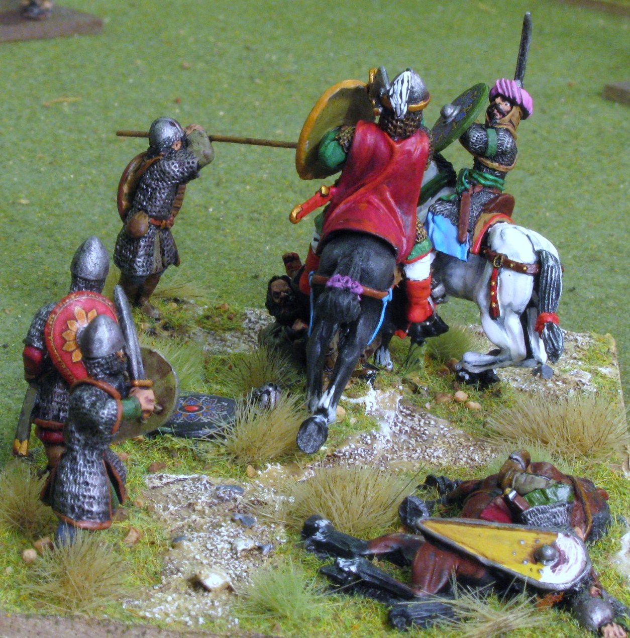 | George Maniakes - Strategos attacking a Syrian horseman in the foreground, while Harald Hardrada and his Varagians await the enemy |