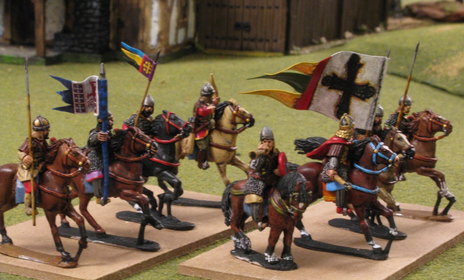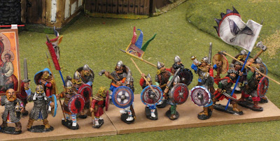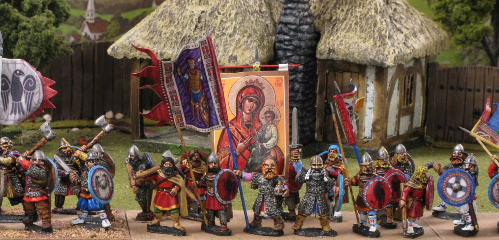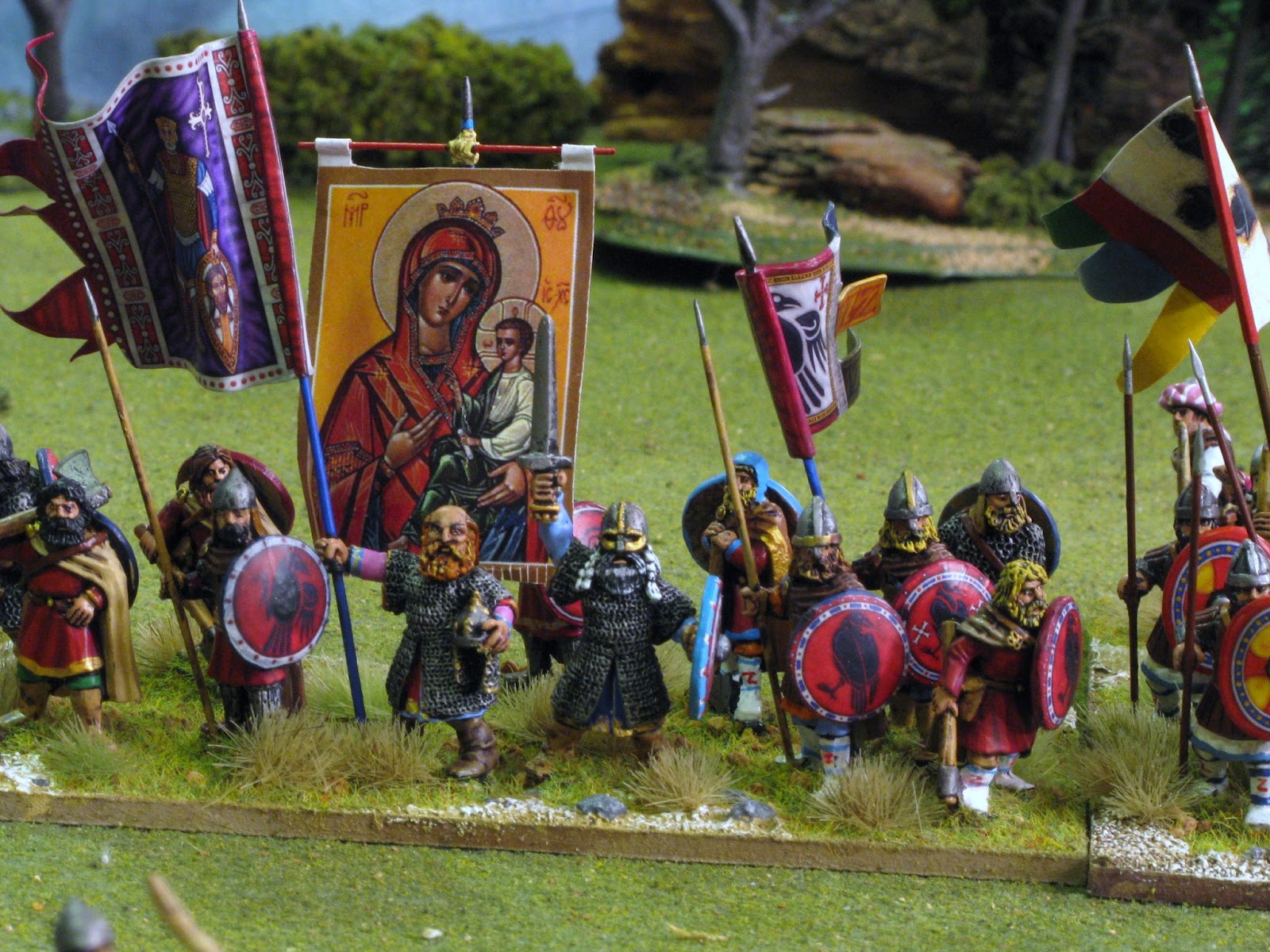 The Varangians are the other component of the formed infantry. These are mercenaries from northern Europe and Russian -- originally they were primarily Swedes and Russ, although many other adventurers joined their ranks. After the Norman conquest of England many huscarls joined the Varangian ranks.